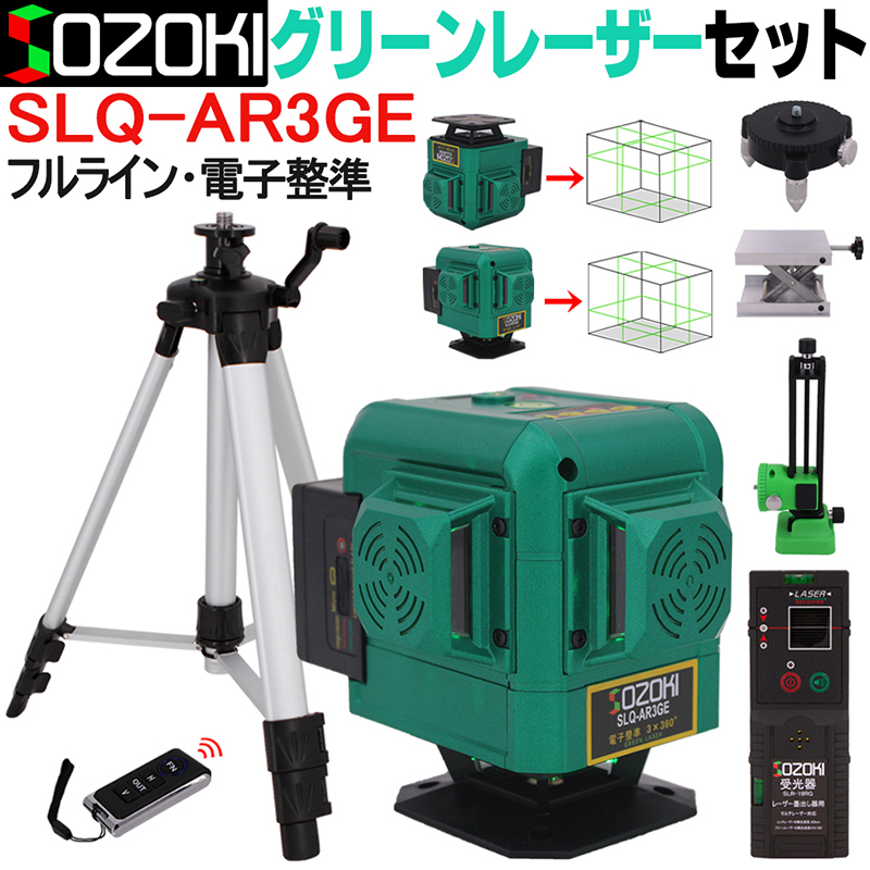SOZOKI 360°フルライン電子整準グリーンレーザー墨出し器 SLQ-AR3GE【受光器+エレベーター三脚セット】明るさ調整機能 リモコン付 上部/底部水平ライン両用