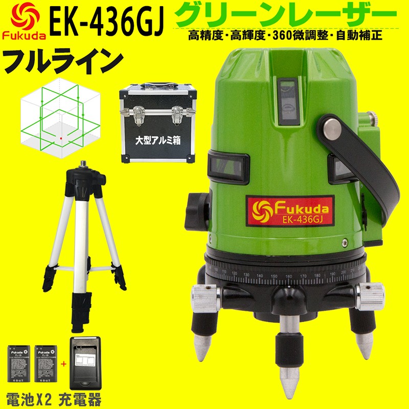 FUKUDA|フクダ フルライン グリーンレーザー墨出し器+三脚セット EK-436GJ リチウムイオンバッテリー*2本【1年間保証】縦×4 横全周 7ライン レーザーレベル