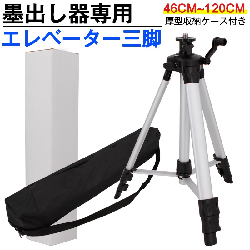 レーザー墨出し器用 エレベーター三脚 【46~120cm】5/8インチネジ 厚型収納ケース付き 1.2m/1200mm/1.2メートル 取り外し可能な5/8インチねじコネクタ