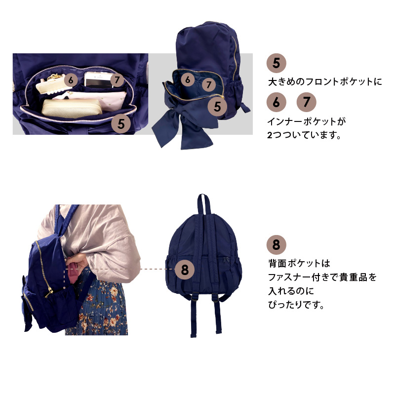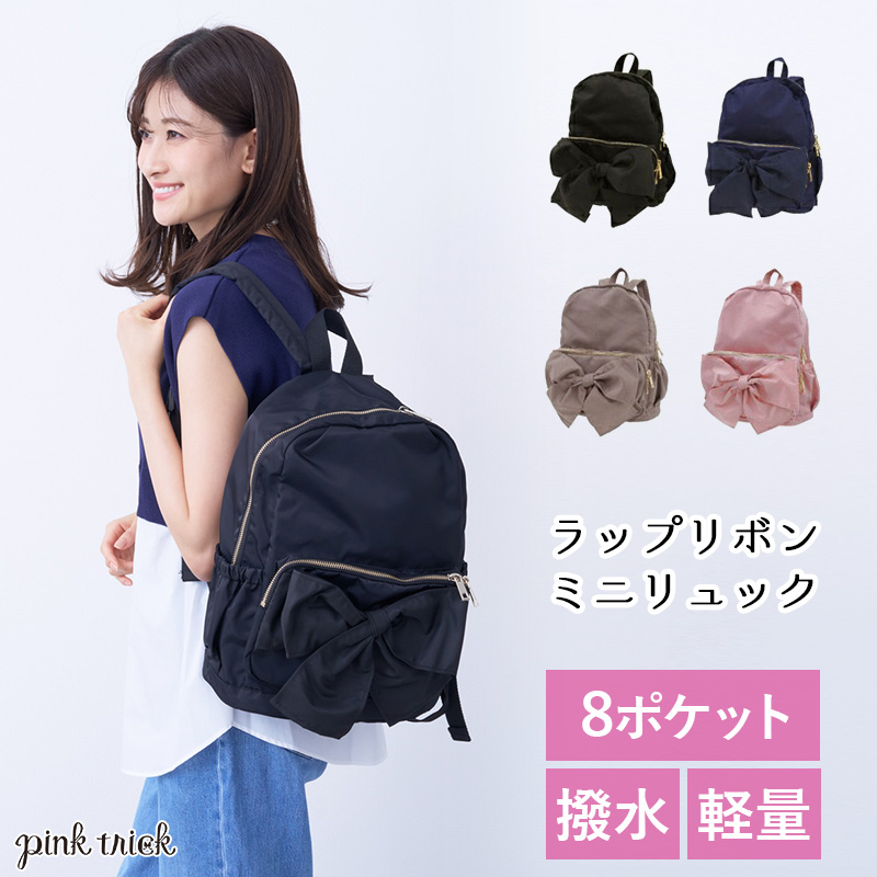 リュック ミニ 小さめ 撥水 軽量 A4 レディース バッグ リボン 背面ポケット 旅行 キッズ 子供 マザーズバッグ 収納力