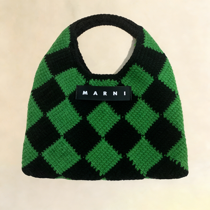 テクニカルウール製のMARNI MARKET DIAMOND ミニバッグ。トップハンドル付き。ひし形パターン。フロントにマルニロゴのブラックレザー製タグ。このアイテムはハンドメイドのため、画像とは若干異なる場合があります。