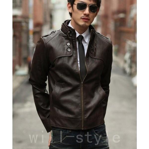 メンズライダースジャケットブルゾンPUフェイクレザーメンズジャケット革ジャンアウタージャンパーレザージャケット