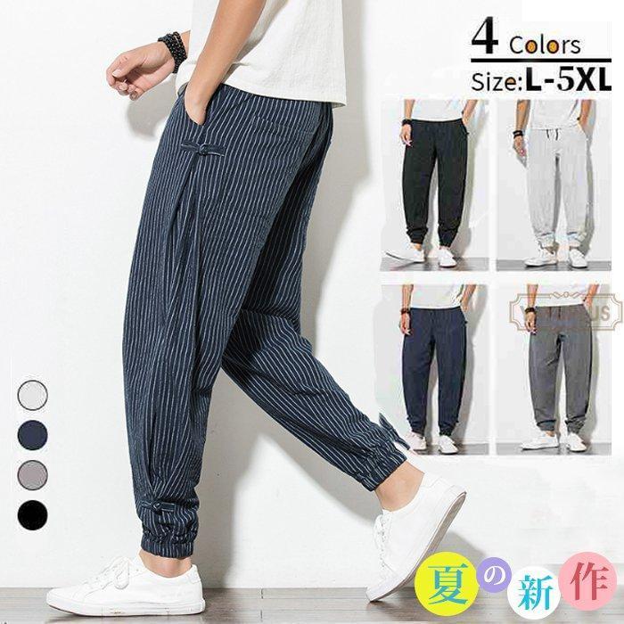 ジョガーパンツ メンズ サルエルパンツ ストライプパンツ メンズ ゆったり ウェストゴム エスニック ワイド 夏新作 新作