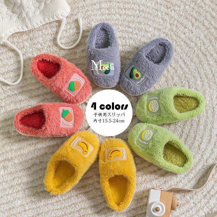 スリッパ おしゃれ 子供用 ルームシューズ キッズ 女の子 男の子 果物柄 裏ボア ムートンスリッパ 室内用 もこもこ 裏起毛 部屋履き 室内履き