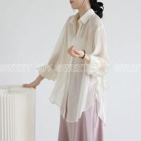 ロングシャツ ラッシュパーカー シャツ UVカット ひんやり 長袖 UVパーカー ブラウス 薄手 通気 吸汗速乾 紫外線対策 夏 日焼け防止