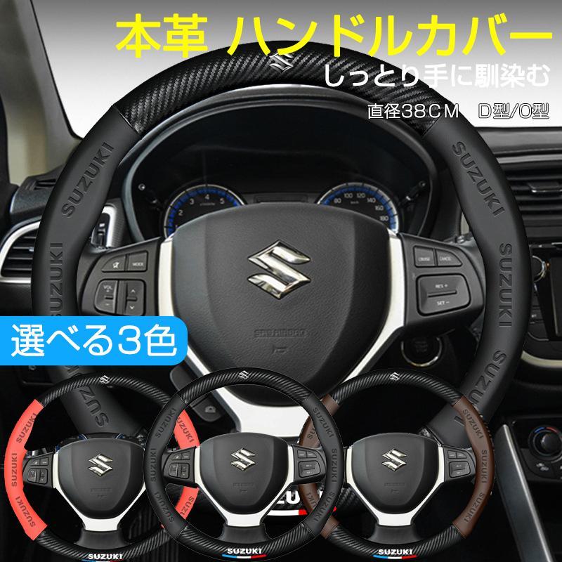 スズキ ハンドルカバー 本革 軽自動車 普通車 ステアリングカバー 38cm D型 O型 内装用品 薄型 おしゃれ 簡単取付 車 乗用車 ハンドルカバー JCSM 滑り止め