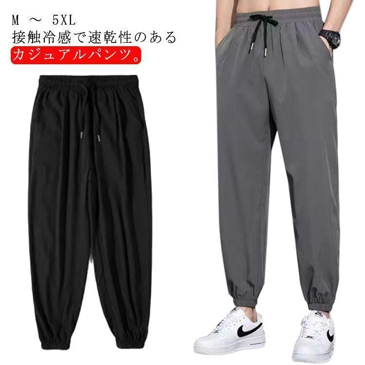 接触冷感 パンツ メンズ ストレッチ 速乾 カジュアルパンツ 冷感 ジョガーパンツ 軽量 薄手 夏 涼しい 長ズボン アンクルパンツ イージーパンツ
