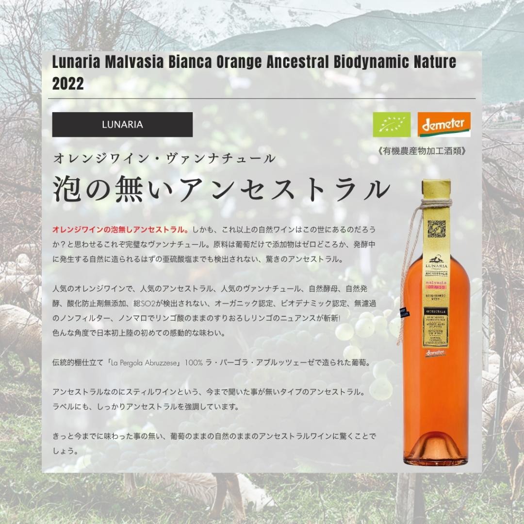 ルナリア マルヴァジア ビアンカ オレンジ アンセンストラル ビオディナミック ナチュレ ワイン