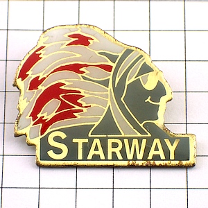 ピンバッジ・サングラスのインディアン羽飾り STARWAY◆フランス限定ピンズ◆レアなヴィンテージものピンバッチ