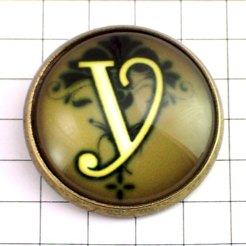 ピンバッジ◆アルファベット「Y」 筆記体 ピンズ 大文字 アンティーク風 ピンバッチ 花柄 CABOCHON ALPHABET #Y ピンズ