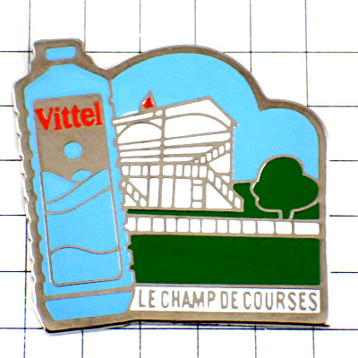 ピンバッジ・ヴィッテル水ペットボトル容器グリーン緑の競馬場◆フランス限定ピンズ◆レアなヴィンテージものピンバッチ