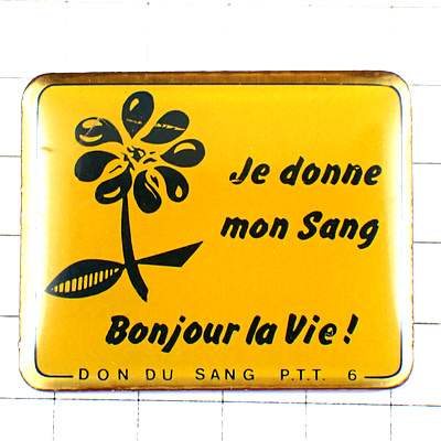 ピンバッジ・献血ボンジュール血液の雫の花 MON-SANG BLOOD DONOR FRANCE◆フランス限定ピンズ◆レアなヴィンテージものピンバッチ