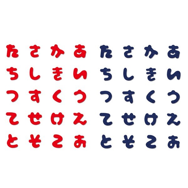 【わくわくWORD】仮止めシール付きアイロン接着 ひらがなワッペン【あ行〜た行】赤/紺