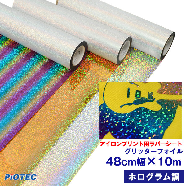 アイロンシート グリッターフォイル 48cm幅×10m ラメ ホログラム調 綿/ポリエステル 手洗いタイプ プレゼント付 アイロン カッティングシート ラバーシート