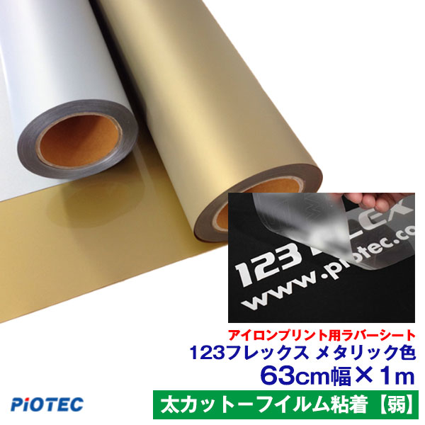 アイロンプリントシート 太カット-フイルム粘着【弱】123フレックス 63cm幅×1m メタリック色 プレゼント付 アイロン カッティングシート ラバーシート 綿/ポリ