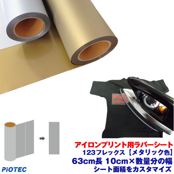 アイロンプリントシート 太カット-フイルム粘着【弱】123フレックス 63cm長の切売 10cm×数量分の幅 メタリック色アイロン カッティングシート ラバーシート