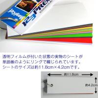 透明フィルムが付いた状態の実物のシートが単語帳のようにリングで綴じられています。