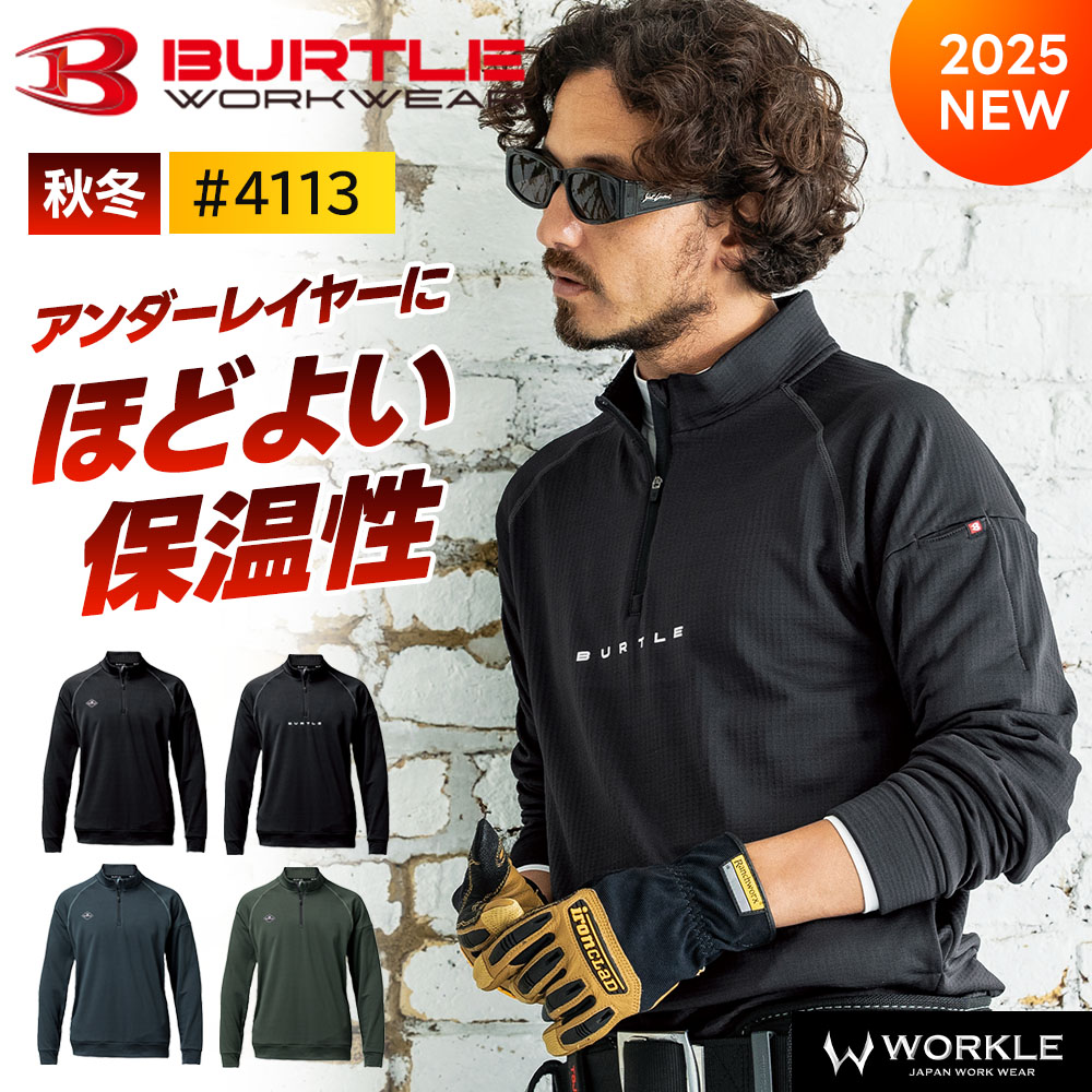 バートル 2025年 秋冬 ハーフジップシャツ 作業服 作業着 暖か 保温 ミドルレイヤー 男女ユニセックス 4113