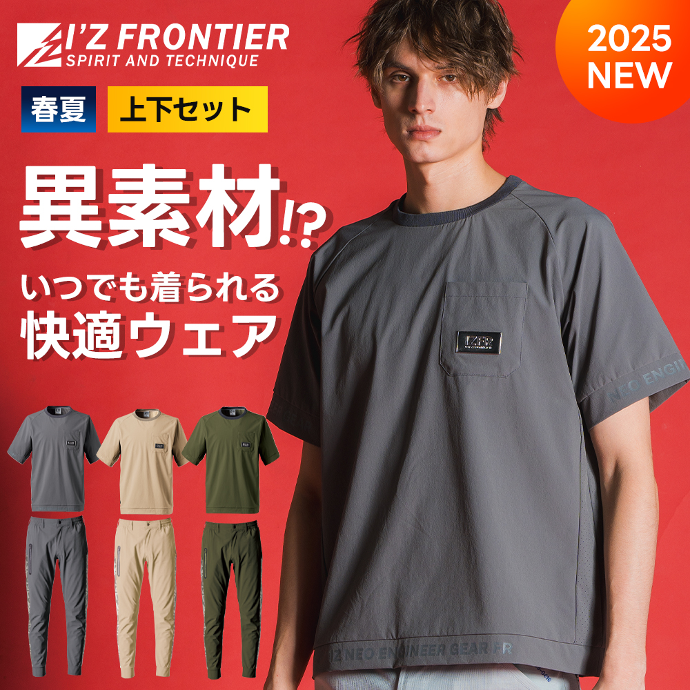 アイズフロンティア 上下セット ナイロンストレッチ 半袖クルーネックシャツ ジョガーパンツ 4905 4903 2025年 接触冷感