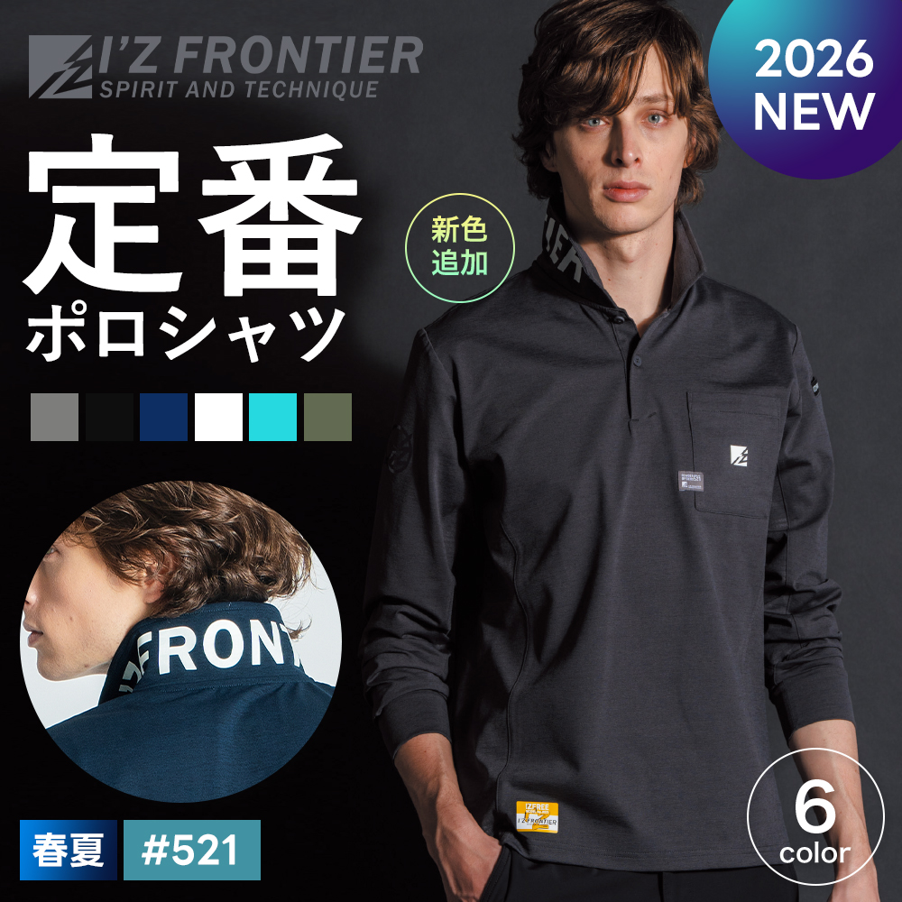 \PayPay祭/ ★2026年最新作★ アイズフロンティア 2026年 春夏 新作 パウダードライストレッチ長袖シャツ ポロシャツ 吸水速乾 UVカット 作業服 作業着 521