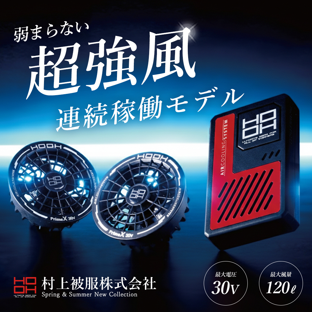 \P+9%/ すぐに発送! 村上被服 HOOH 2026年 春夏 ファン バッテリー セット 軽量 急速充電 5段階 ハイパワー 鳳凰 作業着 作業服 V3001 V3002