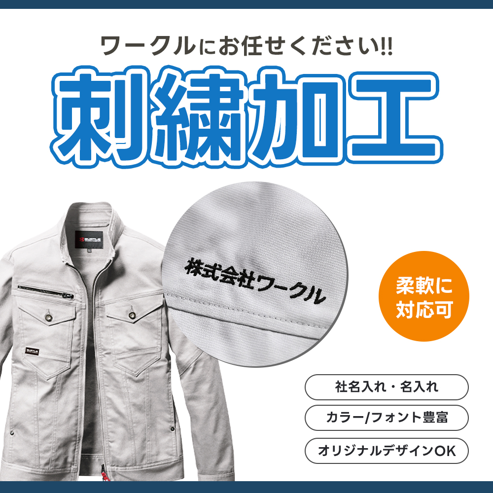 刺繍入れ 名入れ 刺繍加工 ネーム入れ 作業服 作業着 ポロシャツ ジャケット パンツ ワーク