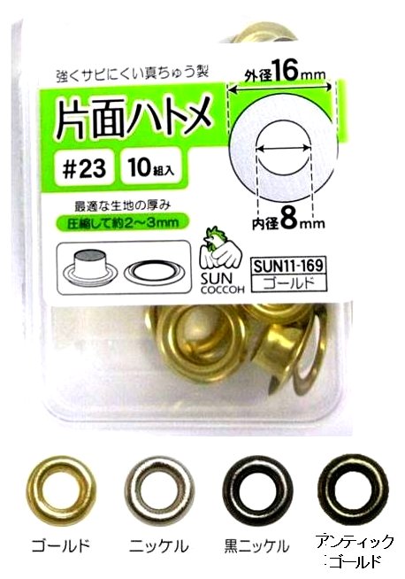 片面ハトメ・内径8ミリ(外径-16ミリ) 10組入り#23(ハトメリング8ミリ) 11-169-171