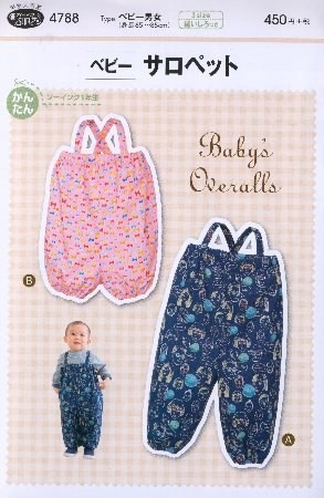 パターン ( 型紙 )・ベビー・サロペット( 簡単 実物大 作り方 子供服 ベビー服 キッズ 洋服 ) 4788