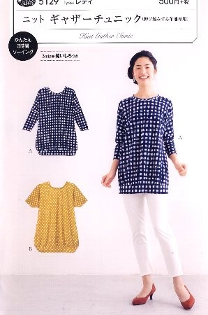 パターン ( 型紙 )・ニットギャザーチュニック( 簡単 実寸大 作り方 レシピ 服 洋服 トップス シャツ ジャケット ) 5129