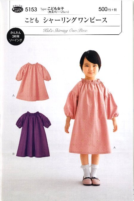 パターン ( 型紙 ) こども シャーリング ワンピース( 簡単 実寸大 実物大 作り方 レシピ子供服 ベビー服 ズボン スカート シャツ トップス ) 5153