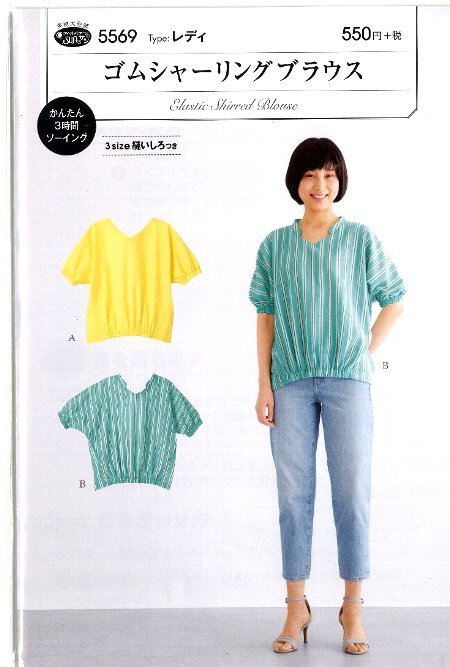 パターン ( 型紙 ) ゴムシャーリング ブラウス ( 簡単 実寸大 実物大 作り方 レシピ 服 洋服 トップス ブラウス シャツ ジャケット ) 5569