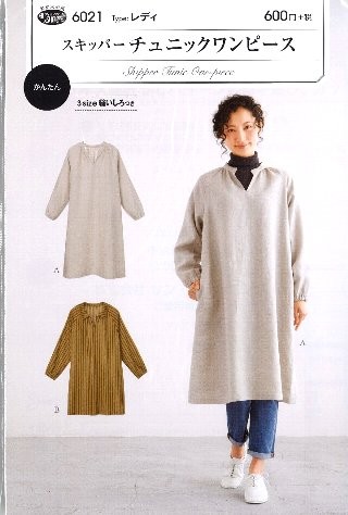 パターン ( 型紙 ) ・レディ・スキッパー チュニックワンピース( 簡単 実寸大 作り方 レシピ レディース ワンピース スカート) 6021