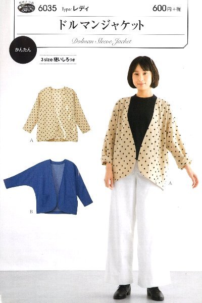 パターン ( 型紙 ) ドルマン ジャケット ( 簡単 実寸大 実物大 作り方 レシピ 服 洋服 トップス ブラウス シャツ ジャケット ) 6035