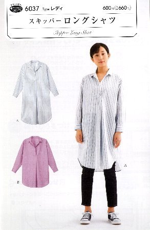 パターン ( 型紙 )スキッパー ロングシャツ( 簡単 実寸大 実物大 作り方 レシピ 服 洋服 トップス ブラウス シャツ ジャケット ) 6037