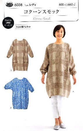 パターン ( 型紙 )コクーン スモック( 簡単 実寸大 実物大 作り方 レシピ 服 洋服 トップス ブラウス シャツ ジャケット ) 6038