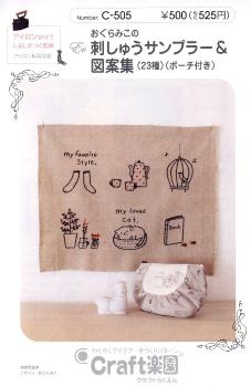 パターン ( 型紙 )・おぐらみこの刺しゅうサンプラー&図案集( 簡単 実寸大 作り方 レシピ バッグ かばん ポーチ 小物 ) c-505