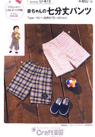 パターン ( 型紙 )・赤ちゃんの七分丈パンツ( 簡単 実物大 作り方 子供服 ベビー服 キッズ 洋服 ) d-473