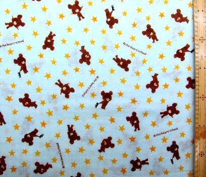T− 生地 ダブルガーゼ キャラクター くまのがっこう ( ブルー ) 柄番号43 約106cm巾(商品の特性上、柄が多少歪んでいる場合がありますのでご了承ください。)G-5064-1B-kk-6186