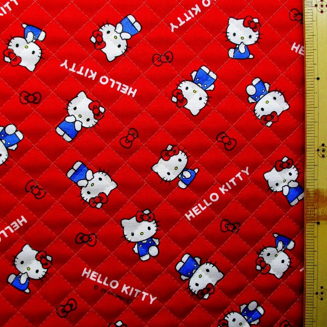 <Q キャラクター キルティング 生地 キルト > キティ ( ベーシック リボン 赤系 ) 柄番号303 ( 2026 ) キルト 生地幅-約106cm 表地-オックス( 綿100% )