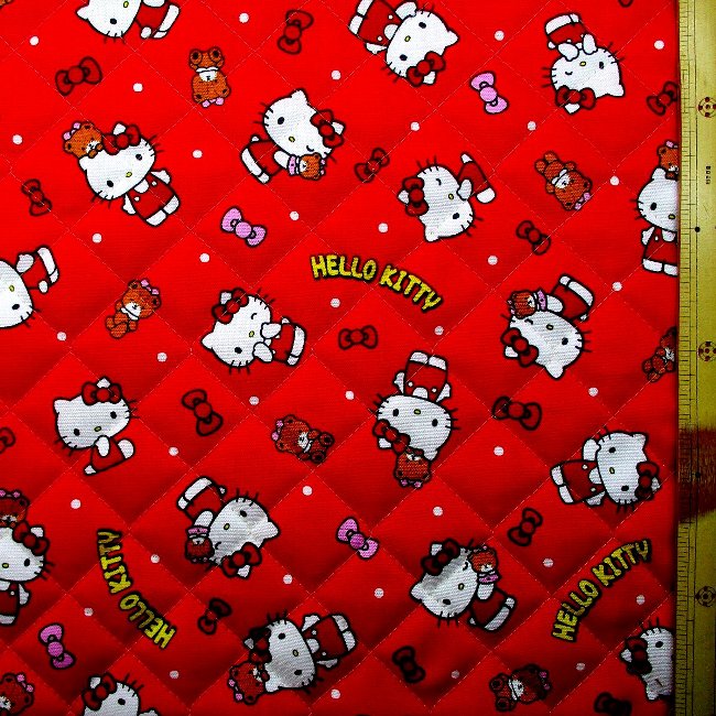 ◇<Q キャラクター キルティング 生地 キルト >キティ( 赤系 ) 柄番号305 ( 2026 ) キルト 生地幅-約104cm 表地-オックス( 綿100% ) gq-8982-1a-kq-6388