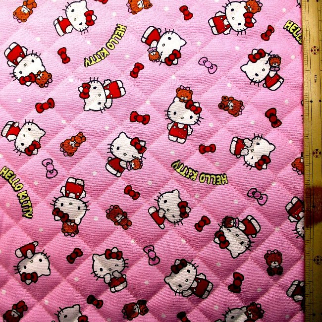 ◇<Q キャラクター キルティング 生地 キルト >キティ (ピンク系 ) 柄番号305( 2026 ) キルト 生地幅-約104cm 表地-オックス( 綿100% ) gq-8982-1b-kq-6389