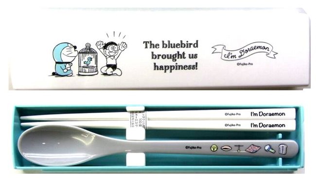 キャラクター スプーン お箸 ( 二点セット ) ケース付き ドラえもん ( レトロ コミック柄 オフホワイト系 ) lunc-osk-139314