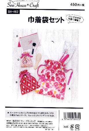 パターン ( 型紙 )巾着袋セット( 簡単 実寸大 作り方 レシピ バッグ かばん 帽子 ポーチ 小物 ) sh-462