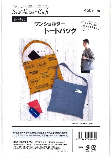 パターン ( 型紙 )ワンショルダー トートバッグ( 簡単 実寸大 実物大 作り方 レシピ バッグ かばん 帽子 ポーチ 小物 ) sh-485