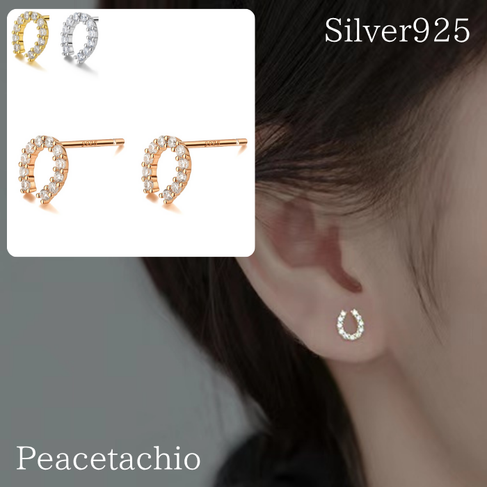 ピアス シルバー Silver925 18Kコーティング 金属アレルギー対応 U型 馬蹄 CZダイヤ