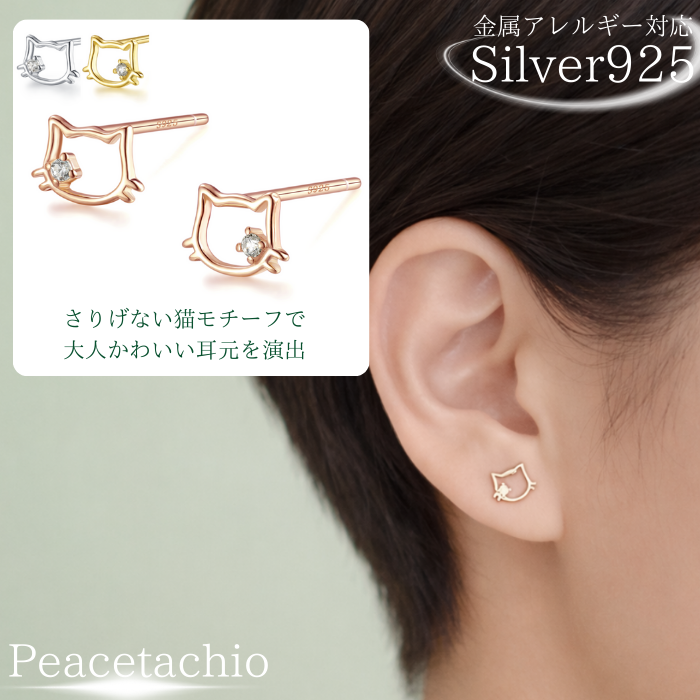 ピアス Silver925 シルバー ゴールド 18Kコーティング ネコ ねこ 猫 かわいい 金属アレルギー対応