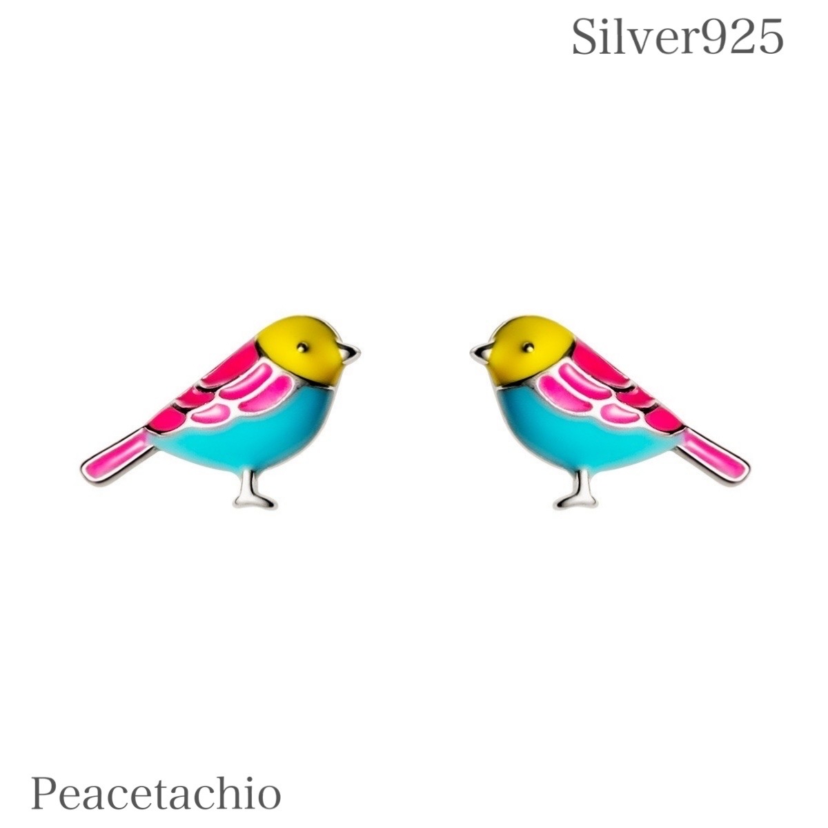 ピアス シルバー925 Silver925 金属アレルギー対応 インコ 鳥 かわいらしい かわいい 小さめ 小さい ピンクゴールド