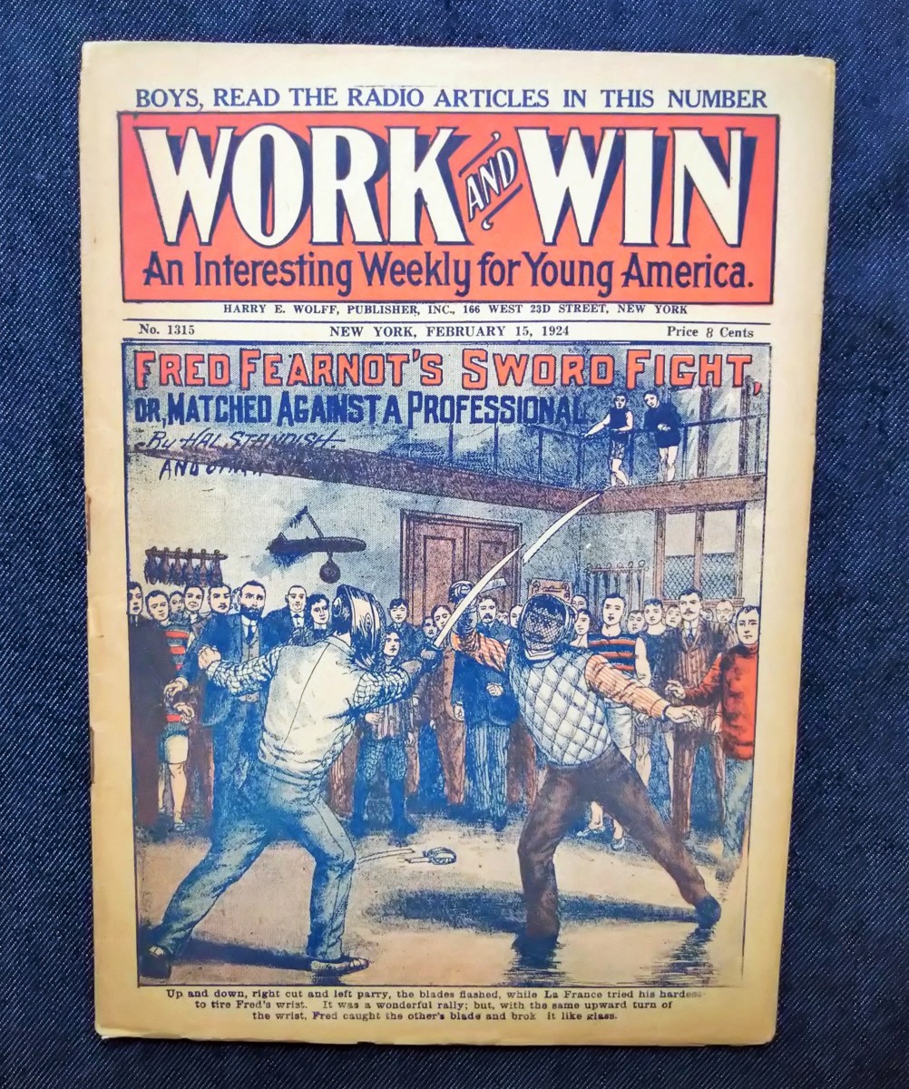 1924年 パルプ雑誌 Work and Win ダイムノヴェル Fred Fearnot Hal Standish Sword Fight 剣術 フェンシング 洋書 戦前アメリカ 三文小説