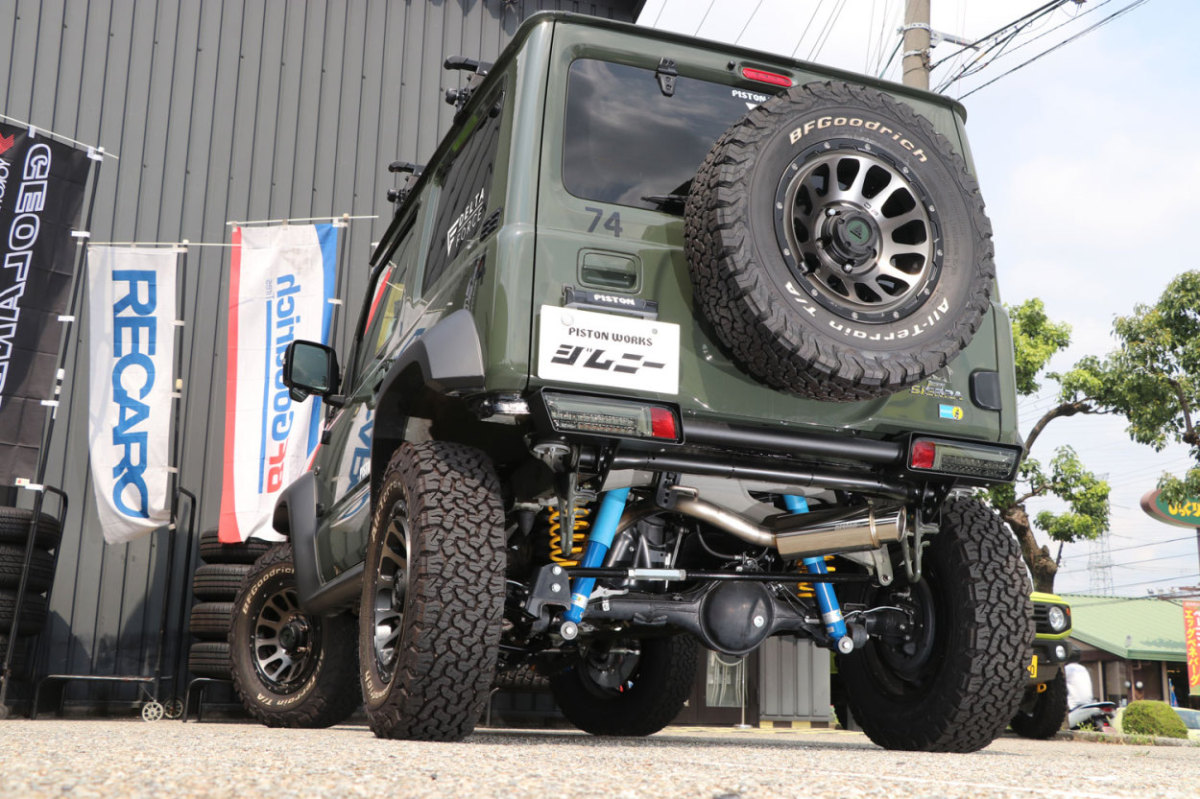 シエラ5型不適合 JB64/JB74ジムニー/ジムニーシエラ用 PISTONWORKSマフラー JB64W/JB74W AT/MT可 車検対応(加速騒音規制適合)ピストンワークスマフラー