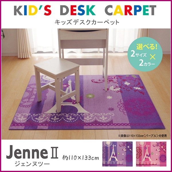 デスクカーペット おしゃれ かわいい エレガント パリ風 エッフェル柄 女の子 新入学 キッズラグ 子供 約110×133cm